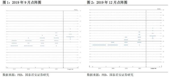 失业率和核心通胀预期都有所下调。2020年失业率从此前的3.7%下调到3.5%,并将长期的失业率水平从4.2%下调到4.1%。2019年的核心通胀从1.8%下修到1.6%,维持了其后三年的通胀预期。但是PCE物价指数和核心PCE物价指数都需要到2022年才能达到2%的通胀目标。关于通胀水平及目标,新闻发布会中讨论较多,鲍威尔强调了实现通胀目标的重要性,长期达不到目标将导致通胀预期下修,进一步压低通胀,制约货币政策空间。2021年通胀水平2%既是美联储的预期,也是一种政策的承诺,不能长期低于通胀目标。