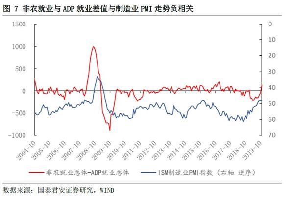 在经历了很长的扩张期后,美国经济的回落基本是市场的共识。但是近期美国的非农就业数据和密歇根大学消费者信心指数出现回升,扰动了市场的预期。不过需要关注三点:第一,非农数据与ADP数据的背离,ADP作为自动采集的数据认为相对更为可靠,而且历史上非农就业人数超越ADP就业人数呈现与制造业PMI负相关的迹象;第二,ISM制造业PMI的持续走弱,且存在制造业向非制造业传导的迹象;第三,美国制造业产能利用率的下滑以及资本开支的下滑,对经济形成负面拖累。
