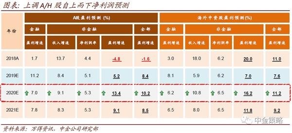 上调2020年A/H股自上而下盈利预测至10.2%/11.2%