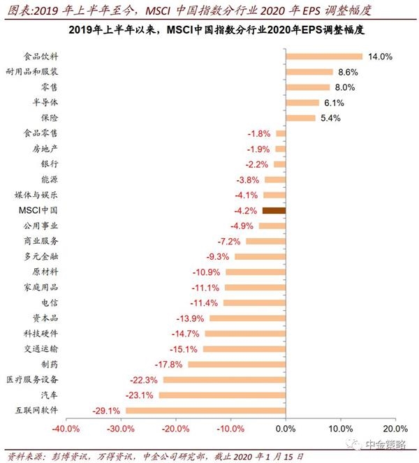 综合最近进展我们将2020年中国A股/海外中资股市场的自上而下盈利预测由6%/5%分别上调至10%/11%: