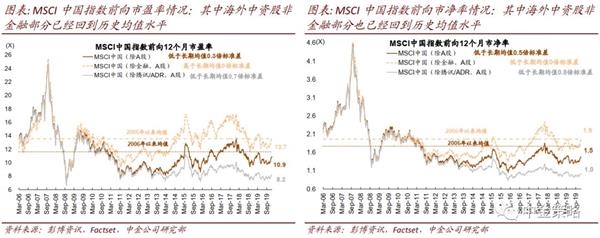 基于最新的盈利预测及估值我们维持对A股及港股积极的看法,目前市场尚未完全反应盈利预期的好转。目前A股蓝筹股沪深300指数前向12个月市盈率在10.8倍(非金融14.6倍),低于历史均值0.4倍标准差(非金融低于0.3倍)。另外,基于最新的盈利及流动性展望,我们上调海外中资股代表指数MSCI China及HSCEI年内目标点位到101及12800。目前MSCI China/HSCEI指数市盈率估值在12.8/10倍,分别略高于均值及低于均值0.3倍标准差。